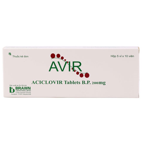 Avir (Acyclovir 200mg hộp 5 vỉ x 10 viên) Brawn (Ấn độ) – Hộp