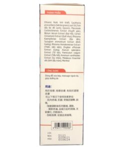 Thành phần: Gaultheria procumbens leaf oil (tinh dầu lộc đề xanh), Foeniculum vulgare extract (Tiểu hồi). Pleomele cochinchinensis extract (Huyết giác), Amomum xanthioides extract (Sa nhân). Rhizoma kaempferiae extract (Địa liền), Melaleuca essential oil (Tinh dầu tràm), Cortex cinnamomi extract (Quế nhục). Syzygium aroma homalomenae extract (Thiên niên kiện), Zingiber officinale extract (Gừng), Asarum splendens extract (Tế tân), Menthol, tá dược vừa đủ